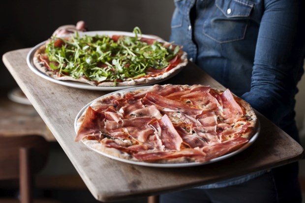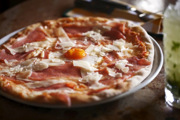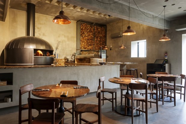 E a entrada está cheia porque não há possibilidade de fazer reservas, logo, pode começar-se por escolher um cocktail e espreitar a montra da charcutaria enquanto se espera por uma mesa. Estas estão num corredor que dá para a sala maior, aquela onde fica o enorme forno das pizzas.