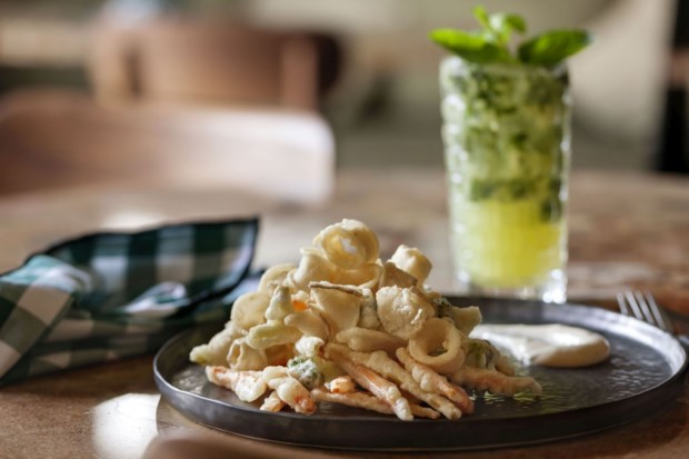 Mesmo no centro da cidade, numa das ruas que actualmente é das mais movimentadas, aquela esplanada parece saída de uma casa de campo, com o arvoredo e os muros que lhe dão estrutura. Apetece ficar ali, mas fica para outro dia, por exemplo, para beber um cocktail de assinatura – como o Corleone (tequila, puré de pera e canela, 6 euros), o Giardino di Prosecco (gin, sumo de limão, hortelã e prosecco, 5 euros) ou um sem álcool como o Sardegna (sumo de romã, de limão, de frutos vermelho, manjericão, jasmim e coco, 4 euros) – e petiscar qualquer coisa que se escolha na charcutaria ou mesmo na carta – por exemplo, uma tábua de queijos e presuntos.