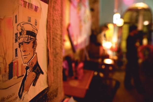 Neste bar quase tudo se inspira nas aventuras da mítica personagem de banda desenhada criada por Hugo Pratt, desde o nome à decoração ou à carta de cocktails. Até este velho telefone, que nos interpela na casa de banho com uma voz entre o fantasmagórico e o vilanesco, definitivamente surreal.
