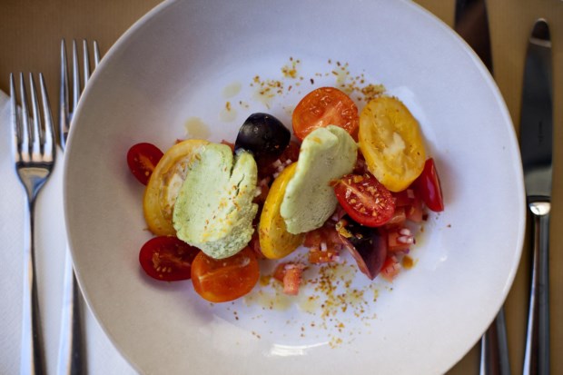 Neste final de Verão, serve no Garrett – onde tem como chef de cozinha Rui Bastos – um prato no qual trabalha diferentes variedades de tomate que são acompanhadas por gelado de manjericão. “O meu bisavô costumava dizer que no tempo do tomate não havia comida que não prestasse e eu lembro-me de, quando era pequeno, comer tomate como se fosse fruta”, conta Leopoldo.