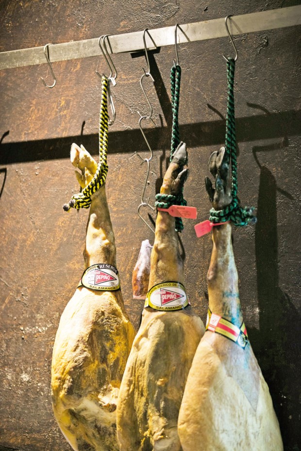 Foi numa dessas vetustas construções de dois pisos que se instalou este conceito ibérico, já lá vão mais de três anos. Bar com balcão, bancos e mesas altas orientados para a lógica petisqueira no piso de entrada, e umas escadas que dão acesso ao andar de cima, onde se podem acomodar à vontade meia centena de comensais em ambiente de refeição mais formal.