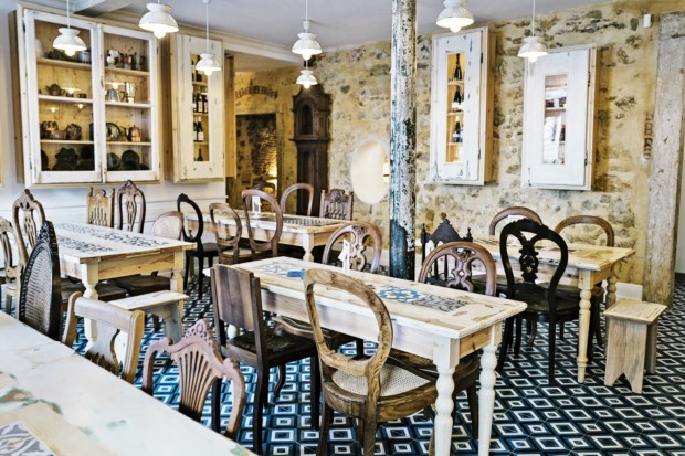Se calhar de entrar, vai-se sentar nas cadeiras que António tirou da rua, quando já não tinham assentos. À sua frente, uma mesa cujos tampos já foram portas. Num dos seus lados, à direita ou à esquerda, umas antigas janelas, “de uma madeira que já não existe”, são loiceiros. Dentro, loiças escuras, saloias. Estas são as peças mais escuras da sala principal do Graça 77. Tudo o resto é bege ou castanho claro.