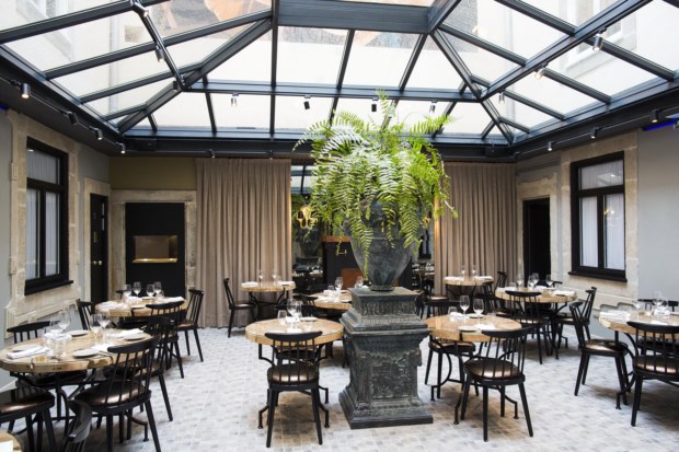 “O meu trabalho é sempre baseado naquilo que eu sinto pelos sítios, pelas coisas, pelas pessoas, e na forma como interpreto os espaços”, descreve. É, pois, natural que num espaço onde há ligações familiares haja “muito do seu criador”. Para o Páteo das Flores, inaugurado oficialmente a 1 de Fevereiro, Pedro Mourão pensou em três espaços distintos, com linguagens próprias. Há esta primeira sala, virada à Rua das Flores, mais indicada para um copo e um petisco ao fim da tarde. “É um lugar mais descontraído, para quem vai a passar na rua e sente vontade de entrar.” Descontraído, sim, mas requintado, como o são, aliás, todas as divisões deste Páteo.