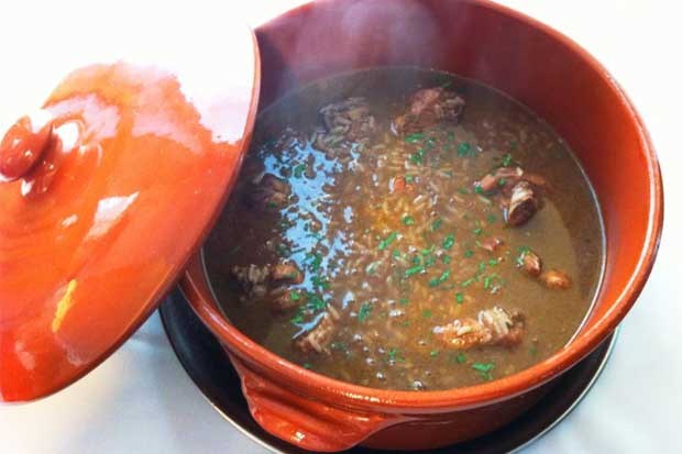 Bichos pequenos, bem temperados com sal, pimenta preta, alho, banha e vinho branco, bem tostados no forno, talvez de lenha, servidos cortados aos bocadinhos, na companhia de batatas às rodelas fritas ao momento, salada de alface e cebola com pouco vinagre (para não prejudicar o vinho), laranja para limpar a boca.