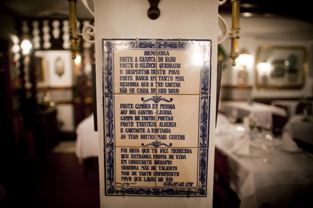 Ali quase ao virar de esquina, outro espaço de referência espera por nós. É a real Casa de Linhares, célebre também por outro apodo, o da casa anterior, Bacalhau de Molho. É um luxo sóbrio, palaciano, nas fundações de um edifício renascentista que ruiu no terramoto de 1755, tão inerente à história lusitana que Luís de Camões, parente dos condes de Linhares, aqui viveu. Sem sinais de "kitsch" fadista, um pé-alto de sete metros, tectos em abóbada, colunas de pedra, tem uma década de história e é gerido por Pedro Guerra e Manuel Bastos - também responsáveis pelo vizinho Pátio de Alfama, onde impera o folclore que, afiança Guerra, é "rigoroso" e o fado encenado, e a Taverna do Embuçado, esta em "stand by".