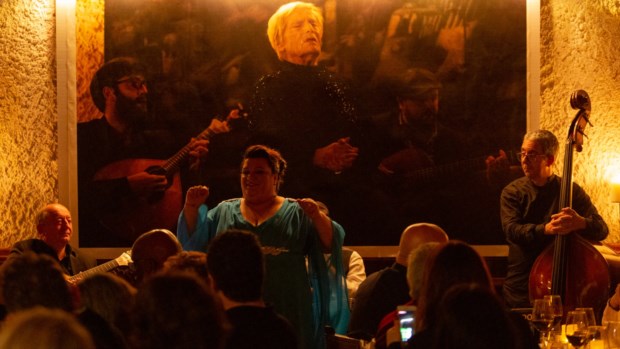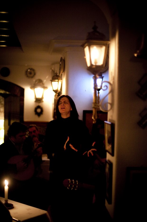 Entre umas garfadas num perfeito bacalhau, as luzes reduzem-se e entram os músicos. Ao centro da sala, a voz poderosa de Cidália Moreira é a atracção principal, bem acompanhada por Jorge Fernando e com direito a uma estrela-visitante, o guitarrista José Manuel Neto. Da mesa, temos vista para um túnel que corre sob Alfama até à Sé. O certo é que deve contribuir para a acústica, já de si perfeita. Muito deverá ter ajudado Ana Moura, que de vez em quando ainda volta a esta que foi a sua casa.