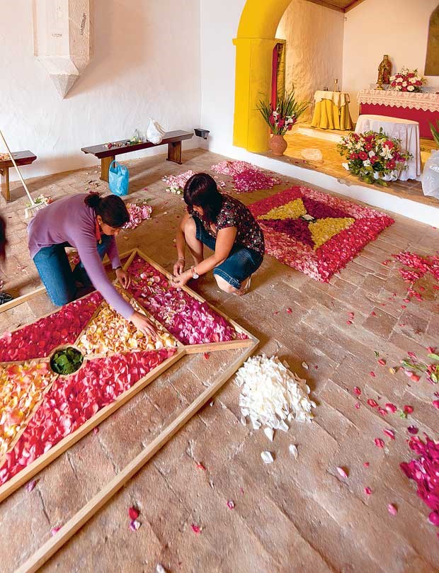 Vermelho. A primeira cor do arco-íris. O vermelho das papoilas da página do lado, que, se vissem dali o Marvão, escutariam o José a compará-lo com "um daqueles mosteiros gregos do monte Athos". A mesma cor que salpica as cerejeiras do Solar de Mateus, antes que algum viajante sortudo apanhe o maravilhoso fruto: "Surpreendeu-nos ver escadas para as pessoas subirem às árvores e colherem cerejas no jardim do Palácio." Outra coisa não seria de esperar, diria o José, que ali se sentira "Viajante no País das Maravilhas", dentro do caleidoscópio criado pelo espelho dos lagos.