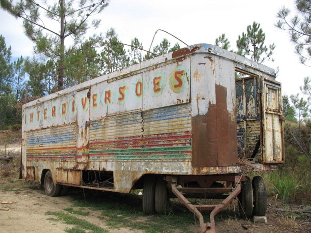 Uma caravana de diversões abandonada em Picha, na região do Pinhal Interior.