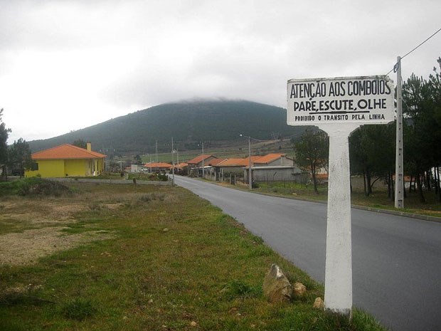 Placa da antiga linha de caminho de ferro do Sabor entre Torre de Moncorvo e Carviçais.