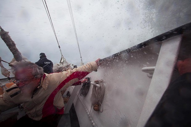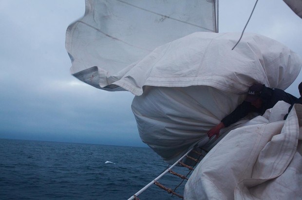 "Vocês sabiam que os antigos pescadores diziam que esta era a zona do homem morto? Quando as vagas entravam aqui, a meio-navio, varriam os homens que aqui estavam", alerta Luís Gouveia, um dos passageiros a bordo. A primeira reacção ao alerta deste amante da vela e do mar é a sensação de estarmos no lugar errado, mas rapidamente o aviso se transforma em tema de conversa. "Tinha um amigo na Terra Nova que nos mostrava slides com imagens impressionantes sobre as viagens desse tempo", acrescenta Luís Gouveia, fazendo recuar a imaginação àquela que terá sido a vivência neste mesmo navio nas suas primeiras décadas de vida.