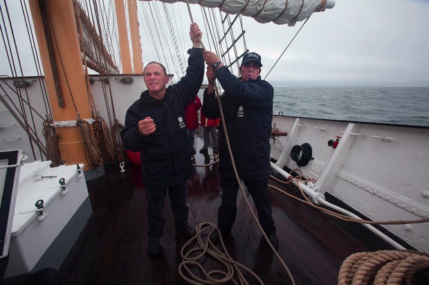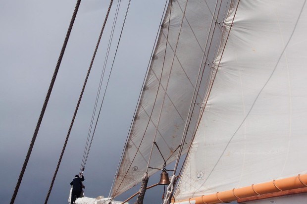 Hoje tudo está bem mais facilitado, começando, desde logo, pelas manobras para as quais a guarnição do navio e os passageiros são encaminhados logo nos primeiros momentos da viagem: içar as velas. Uma a uma, começando da proa para a ré: giba, polaca, bujarrona, traquete, contra-traquete, grande e mezena. Com força de braços e a ajuda mecânica de um guincho, não foi preciso muito tempo para ver o SMM com as velas todas içadas.
