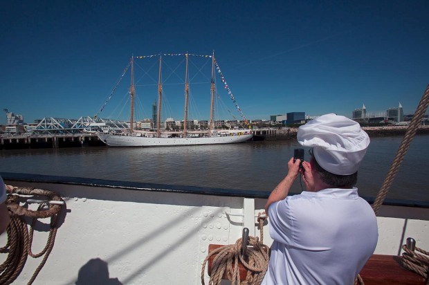 O avistamento do Parque das Nações prenuncia o fim da viagem e também uma recepção pouco comum. No cais, está já o Creoula, irmão-gémeo do SMM, actualmente sob a alçada da Marinha. Vão juntar-se para comemorar o seu 75.º aniversário - os dois navios foram lançados à água a 10 de Maio de 1937, em Lisboa. Para quem avista de fora, será difícil encontrar diferenças entre estes gémeos - só no interior é que os navios são bastante diferentes -, os únicos sobreviventes de uma frota que ficou conhecida como Frota Branca Portuguesa (existe um terceiro "sobrevivente", o Gazela, mas está nos Estados Unidos).