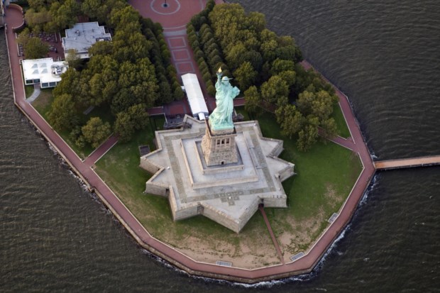 A Estátua da Liberdade, na sua ilha da liberdade em Nova Iorque, celebra o aniversário a 28 de Outubro. Foi em 1886 que foi dada por terminada.