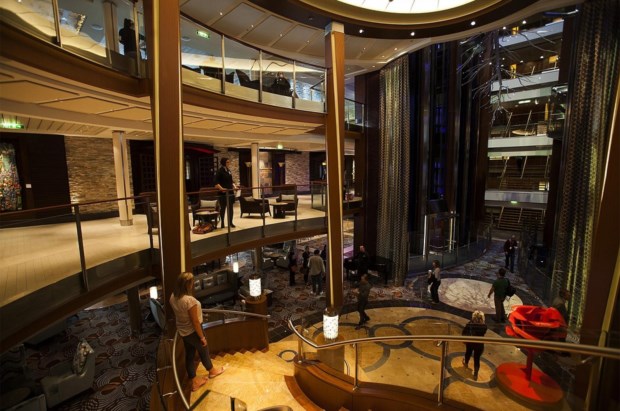 Estamos nós a passar os trâmites de embarque e já se vêm passageiros nas varandas dos camarotes - e aqui está uma das coisas boas deste navio: 90 por cento dos camarotes têm vista de mar. Antes de chegarmos ao nosso, percebemos que a vida já começou no interior do Reflection: subimos num dos elevadores panorâmicos do átrio central e vemos como as multidões já se instalaram nos espaços públicos em redor do Grand Foyer, que se sucedem à laia de mezzanines nos vários andares. De um andar para outro vemos sucederem-se bares com diferentes matizes, lounges com ambientes vários, uma impressionante biblioteca duplex. Ficamos pelo décimo andar, onde o nosso camarote nos espera a bombordo (do lado esquerdo) e a caminho da popa (as traseiras) e quando aí entramos levamos connosco o primeiro relance do chamado "ar de família" destes navios Solstice: um design e decoração de moderna sobriedade - nas nossas andanças veremos o equilíbrio com que estes elementos se ligam para criar atmosferas distintas à medida de cada espaço.