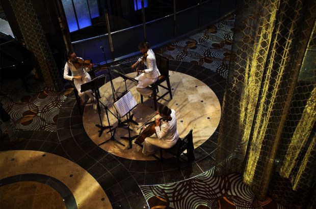 O nosso camarote é uma síntese perfeita. O horizonte mira-nos para lá da porta-janela, para lá do varandim transparente; cá dentro o espaço não é grande (destaca-se a casa-de-banho), mas o conforto impera, desde a cama ao sofá. Não é a suite Penthouse, por exemplo, onde da kitchenette ao walk in closet, do piano de cauda à casa de banho com banheira e chuveiro, nada parece ter sido esquecido, mas não precisamos de tanto. Aliás, não vamos sequer usufruir muito do camarote: temos uma minicidade inteiramente devotada ao lazer à espera de ser descoberta.