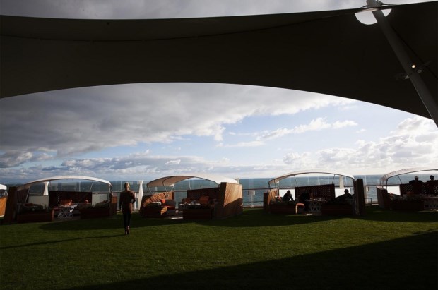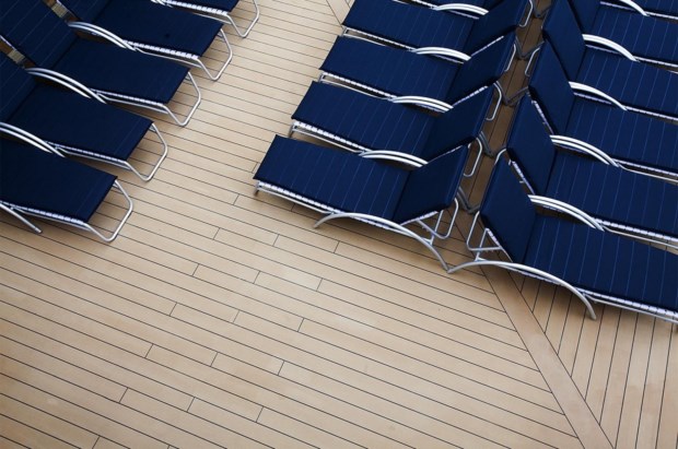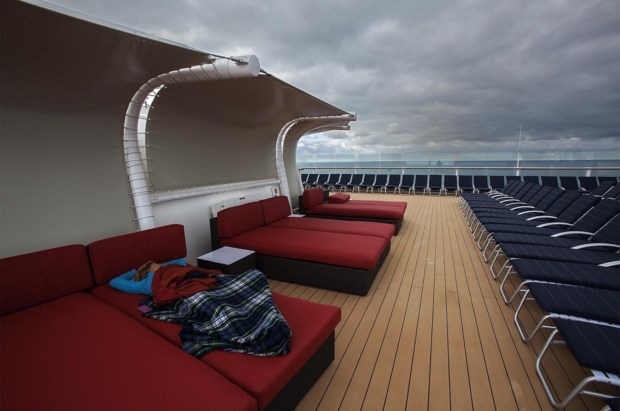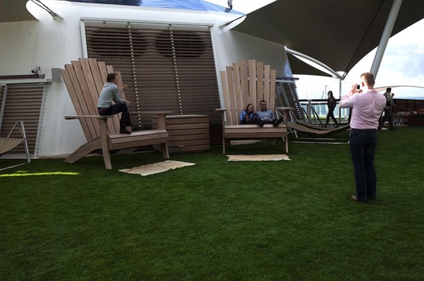 E assim, é verdade, a relva não é original, porém há alguns inéditos. Entre os quais aquele que fez as parangonas dos jornais da especialidade mesmo antes de o navio ter sido lançado ao mar: o chuveiro, uma excentricidade no seu sentido mais literal - uma cabina toda ela de vidro acoplada e suspensa no deck 14, na suite Reflection. O chuveiro é o único do género a sulcar os mares; a suite é a maior de qualquer navio Celebrity. Já lá iremos.