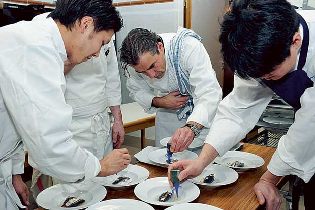 Lugar para o evento já havia - a Villa Demoiselle, uma vivenda Art Deco do princípio do século XX escrupulosamente recuperada pelos Vranken nos últimos dez anos. E maestro para a cozinha também, depois de o chef Thierry Voisin ter aceitado o desafio de cozinhar para alguns jantares de celebração. Voisin, que, recorde-se, antes de rumar para o Imperial Hotel de Tóquio tinha já conquistado três estrelas Michelin no Les Crayères, de Reims. À partida, a conciliação já consagrada entre o champagne e a cozinha asiática augurava um casamento harmonioso; mas Voisin foi mais longe e se em alguns dos seus pratos alguns dos presentes (a comitiva portuguesa, pelo menos) não lhe teceram excessivos encómios, houve ao menos uma entrada e uma sardinha (seria talvez cavala) absolutamente geniais.