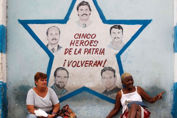 À conversa com um mural dedicado a cinco agentes cubanos presos nos EUA há uma década (Julho 2010)
