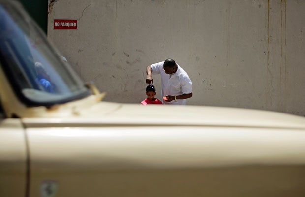 Corte de cabelo em barbeiro de rua (Abril 2011)