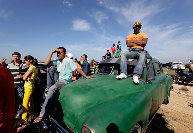 Cuba, entre o passado omnipresente e anacronismos vários da sua capital. Destino idolatrado por muitos viajantes, a sua capital, Havana, é vista aqui através do olhar de Desmond Boylan, fotógrafo residente, da Reuters, que, ao longo dos anos, tem captado o quotidiano da capital cubana. A vida pulsa entre a luta pela sobrevivência mas também entre festas, entre novos e velhos negócios, entre homenagens ao regime mas também entre a contestação possível. E pulsa especialmente na vital avenida do mar, El Malecón, onde se volta sempre. Uma visita aos tempos de Havana | Foto no Malecón a 12 de Junho de 2011