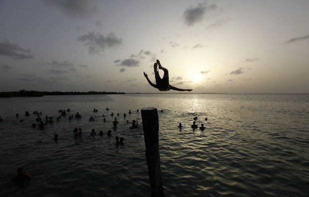 Salto para a água em Isabela de Sagua, província de Santa Clara, Cuba central