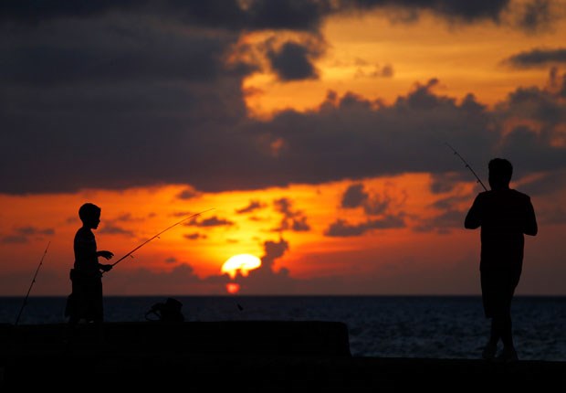 Pai e filho pescam da El Malecón ao por-do-sol (Julho 2010)