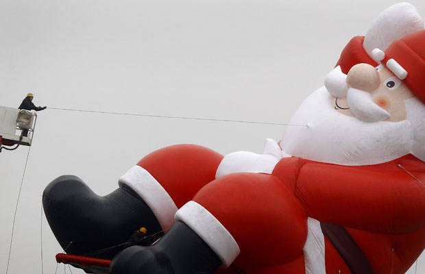 Alemanha. Um gigantesco Pai Natal insuflável a ser colocado no topo de um centro comercial entre Darmstadt e Frankfurt Kai Pfaffenbach/Reuters
