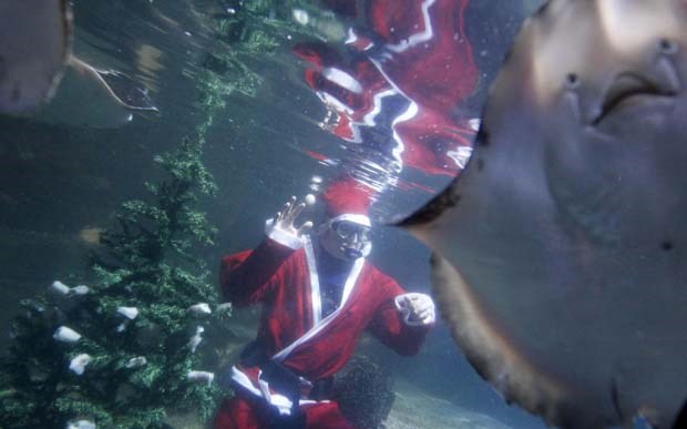 Alemanha. Pai Natal mergulhador no Sea Life de Berlim Tobias Schwarz/Reuters
