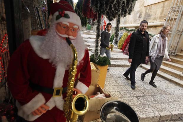 Israel. Uma loja de produtos e decorações natalícias numa rua da Cidade Antiga de Jerusalém Amir Cohen/Reuters