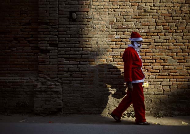 Nepal. Um solitário Pai Natal a caminho das comemorações natalícias em Katmandu Navesh Chitrakar/Reuters