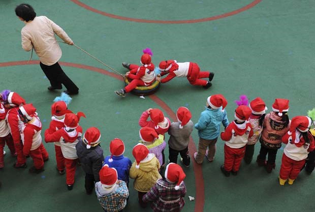 China. Diversões natalícias num jardim de infância de Hefei Jianan Yu