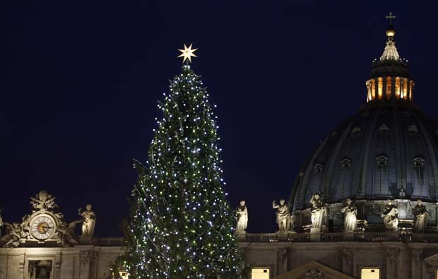 Vaticano. Uma árvore de 30 metros, vinda da Ucrânia, é iluminada oficialmente na praça de São Pedro Tony Gentile/Reuters