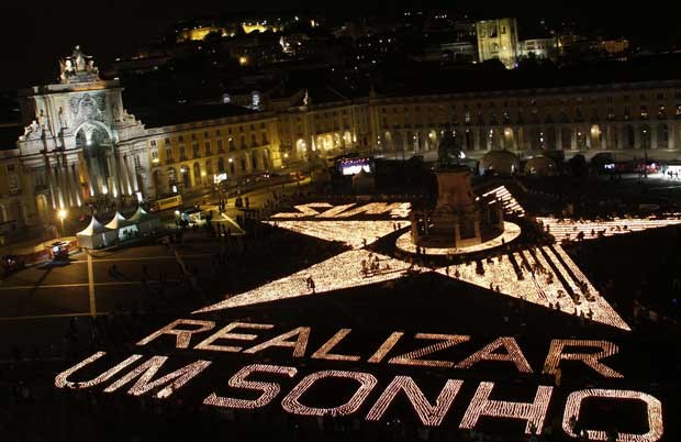 Portugal. Em Lisboa, acenderam-se 50 mil velas no Terreiro do Paço e bateu-se o recorde do Guiness da maior imagem feita com velas. Cada vela representou o donativo de um euro para a Terra dos Sonhos, organização que realiza os sonhos de crianças e idosos com doenças terminais Hugo Correia/Reuters
