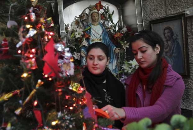 Jordânia. Jovens cristãs iraquianas, exiladas na Jordânia, decoram a árvore de Natal numa igreja em Amã Ali Jarekji/Reuters