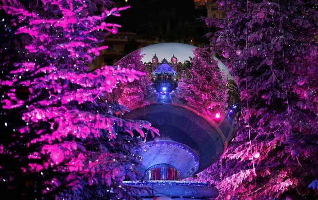 Mónaco. O Monte Carlo Casino reflectido numa bola que decora uma árvore de Natal Eric Gaillard/Reuters