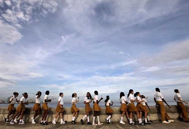 Jovens estudantes durante uma performance em Havana Claudia Daut/Reuters