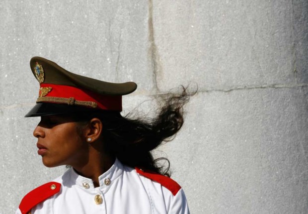 Uma soldado cubana perto do monumento à independência de Cuba Claudia Daut/Reuters