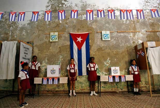 Jovens estudantes perto das urnas de voto durante umas eleições em Havana Claudia Daut/Reuters