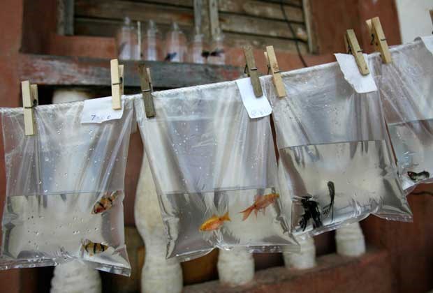 Peixes tropicais em exposição para venda na cidade costeira de Gibara Claudia Daut/Reuters