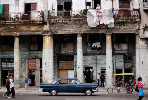 Um carro vintage passa perto de um prédio na avenida principal de Havana, El Malecón Enrique de la Osa/Reuters