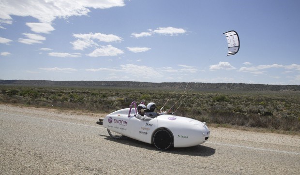 Um carro a energia eólica (usa baterias que se recarregam através de um moinho de vento). Viajou, em 2011, 5000km de Perth a Sydney, na Austrália. Reuters/buckle-up.de