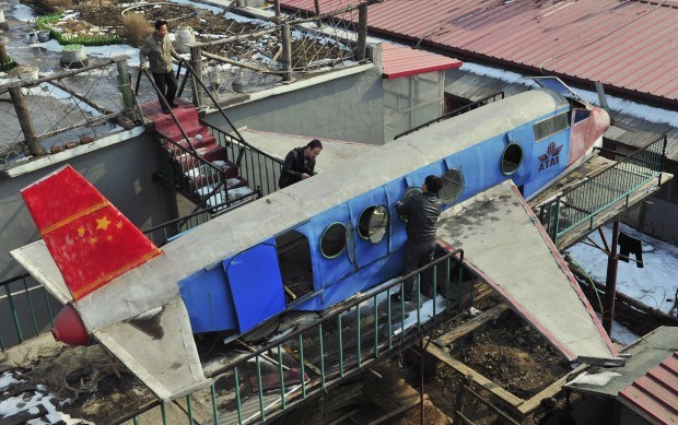 Na China, o agricultor Li Jingchun gere a construção do avião que ele próprio criou, no topo da sua casa. Tem 5m de comprimento e foi feito de peças recicladas. O trabalho demorou dois anos e o custo final chegou a cerca de 6000€ Sheng Li/Reuters