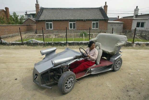 Um carro de (pequenas) corridas caseiro. Este "minidesportivo" foi criado pelo agricultor chinês Zhang Jinduo e o seu filho, mecânico. Têm um motor traseiro de motocicleta e atinge 60 a 80km/h Reuters