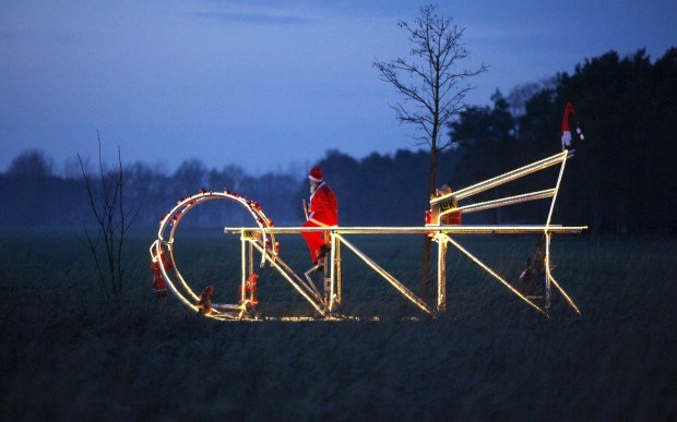 E uma proposta natalícia de Didi Senft: a bicicleta do Pai Natal. Em forma de trenó, claro. Mede 7,30m de comprimento e tem uns 3,1m de altura. Se voa é que não sabemos. Fabrizio Bensch / Reuters