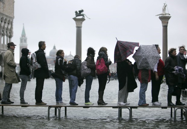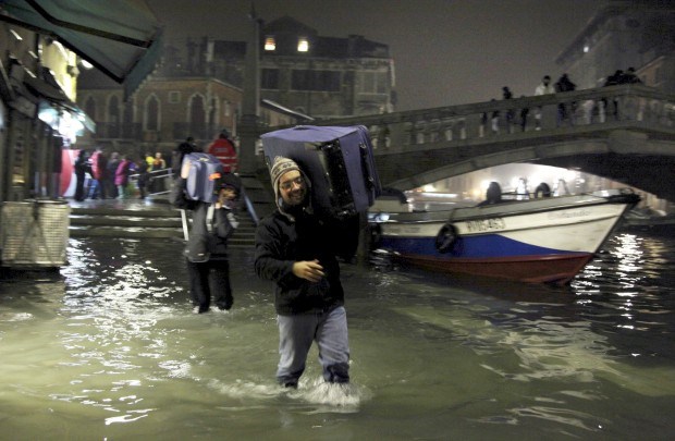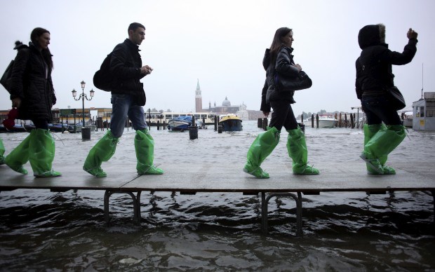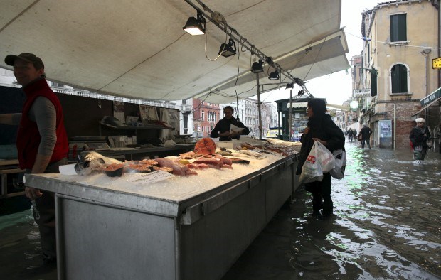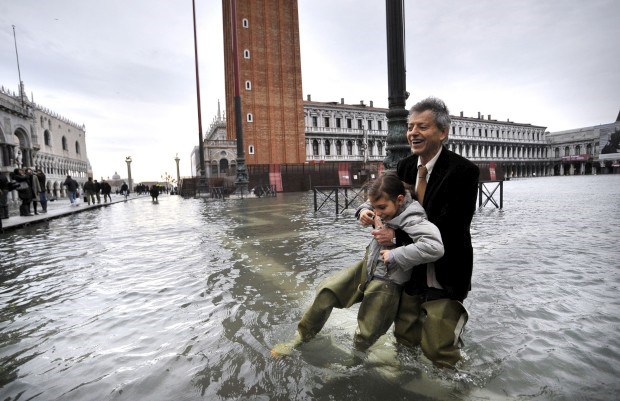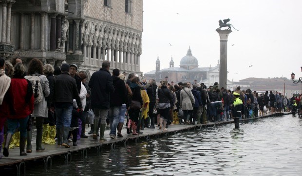 "Acqua alta" (maré alta ou cheia) é como por Veneza se chama a este fenómeno sazonal, que todos os Invernos volta para encher ainda mais de água a cidade dos canais. Ocorre graças a uma combinação de factores naturais e o certo é que dá um toque quase de Atlântida à mais romântica das cidades... Para não assustar os turistas, a cidade multiplica a informação sobre a normalidade da "acqua alta", incluindo online em http://www.comune.venezia.it/flex/cm/pages/ServeBLOB.php/L/EN/IDPagina/22795. A fotogaleria reúne fotos captadas nos primeiros dias de Novembro de 2012. Fotogaleria de Fugas