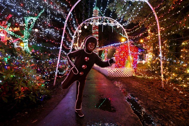 Em Vancouver, Canadá um "homem de gengibre" cercado de luzes de Natal por todo o lado AFP