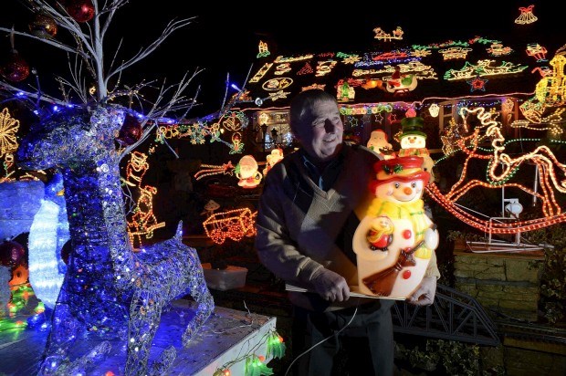 Em Bagby, Reino Unido, Eric Marshall passa três semanas por ano a iluminar a sua casa para o Natal - é já uma celebridade e aproveita para recolher fundos para a igreja local através de donativos Nigel Roddis/Reuters