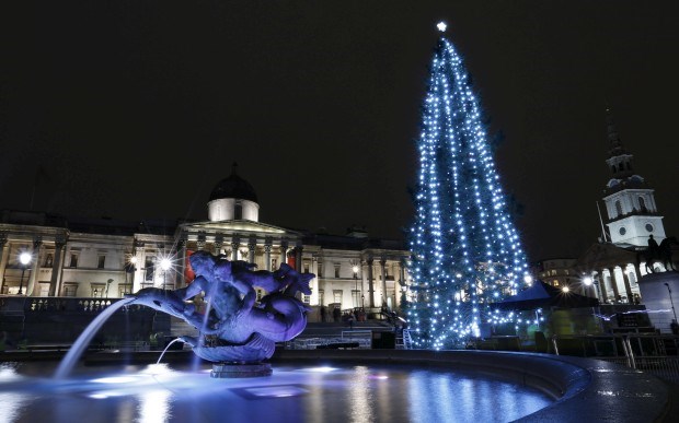 Esta árvore de 21m veio de uma floresta perto de Oslo para iluminar a Trafalgar Square de Londres Olivia Harris/Reuters