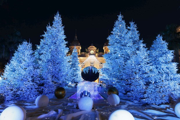 Lá dentro brilha o dinheiro, cá fora o Natal: decorações frente ao Casino Monte-Carlo Valery Hache/AFP