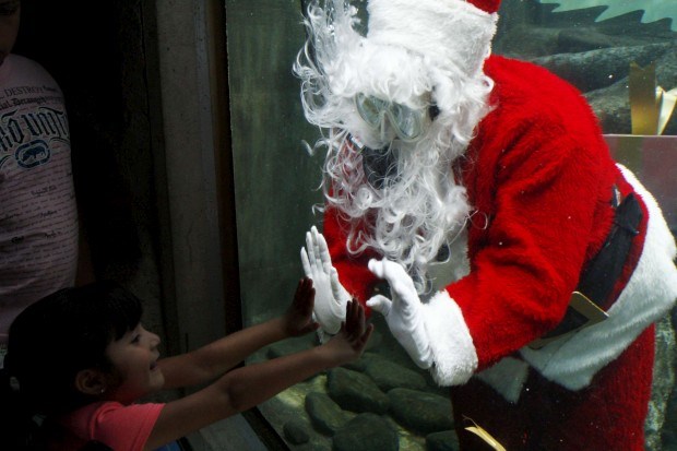 Pai Natal mergulhador no Aquário de Guadalajara Hector Guerrero/AFP